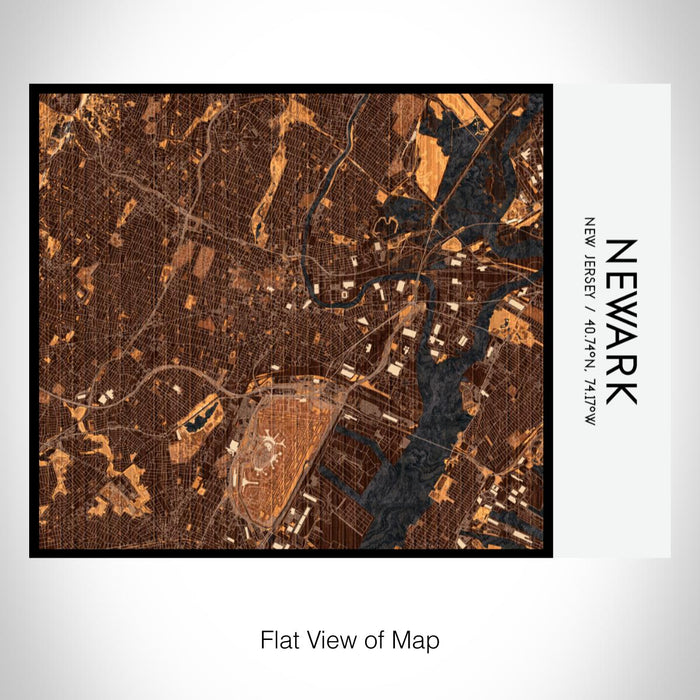 Dark, mysterious, and readily burnt into your memory, our ember map is inspired by the natural and beautiful patterns found in wood grains. Water elements like oceans and rivers are represented by a dark veneer pattern whereas parks and grassy areas have a lighter oak-like color. Bold lines and lettering are added to frame the map and turn your favorite place into a work of art.