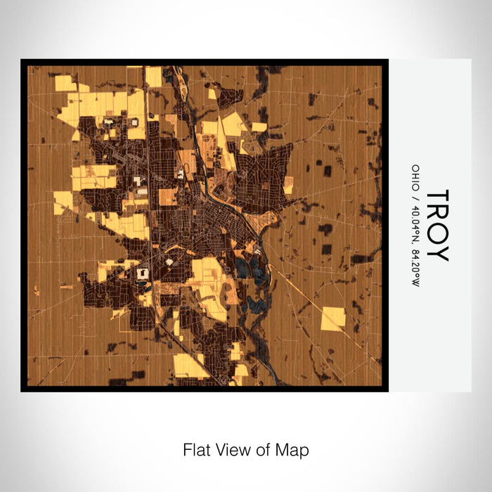 Dark, mysterious, and readily burnt into your memory, our ember map is inspired by the natural and beautiful patterns found in wood grains. Water elements like oceans and rivers are represented by a dark veneer pattern whereas parks and grassy areas have a lighter oak-like color. Bold lines and lettering are added to frame the map and turn your favorite place into a work of art.
