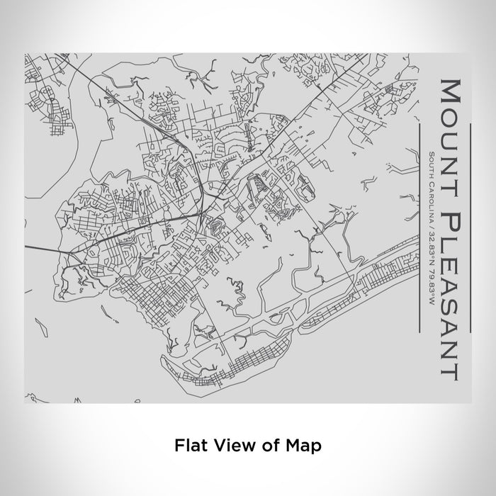 Custom engraved map of Mount Pleasant, South Carolina and coordinates on 20oz double walled insulated stainless steel bottle with bamboo top. Measurement - 4in x 4in x 12in.